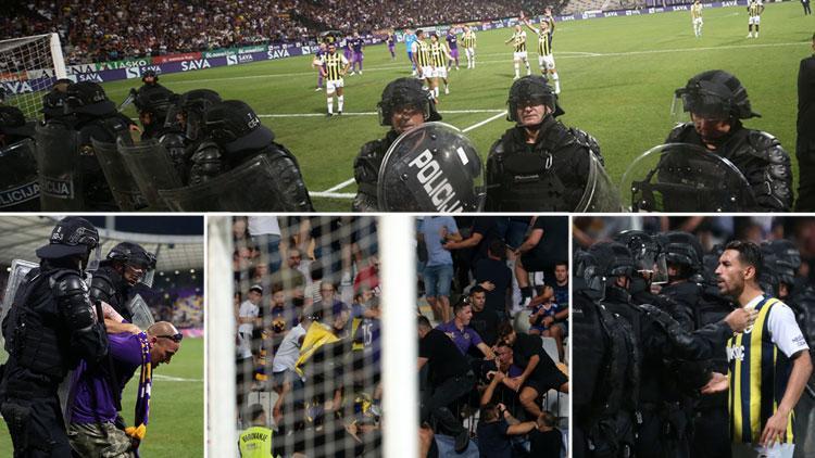 Es kam zu einer Schlägerei zwischen der Tribüne, auf der die Fenerbahçe-Fans standen, und der Tribüne der Heimmannschaft. Ein Fan sprang von der Maribor-Tribüne in den Bereich hinter dem Tor, steuerte auf die Fenerbahçe-Tribüne zu und attackierte das Banner. Dann kam einer der gelb-dunkelblauen Fans in den Bereich und nahm das Banner zurück.